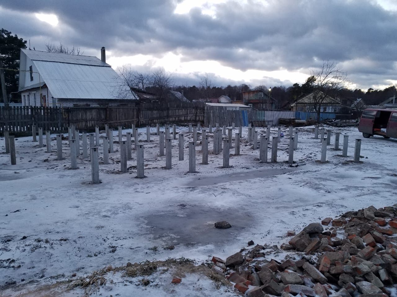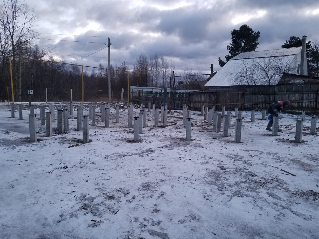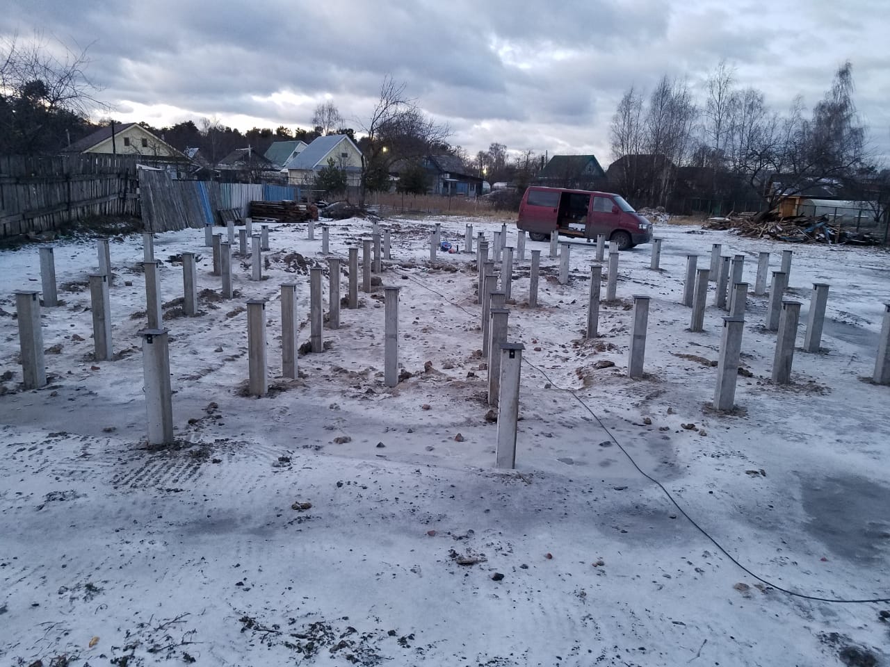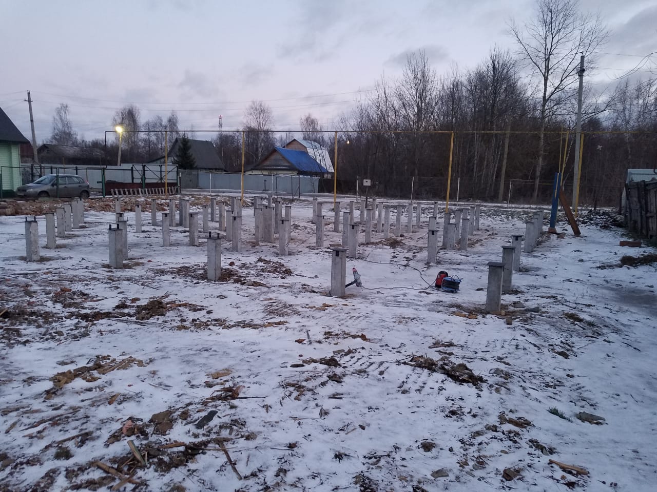 Основные сложности: на месте свайного поля и был старый деревенский дом и было очень много строительного мусора , в следствии чего работы были выполнены не за 3 дня а за 6